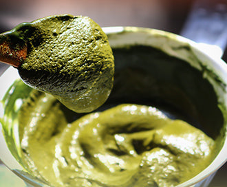 Caution: If this is your first time using Indigo or hair herb, complete step 1 to create a small amount of mixture and perform a skin patch test on the neck near the scalp. If you feel any irritation, discontinue use. Use Indigo mixture with caution as it can stain skin and clothes.